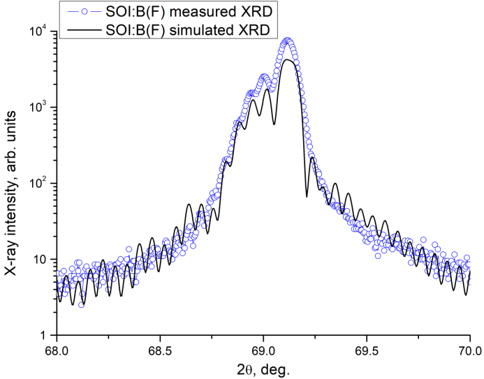 Методами рентгеновской дифрактометрии и рефлектометрии на дифрактометре Bruker D8 Discover возможно исследование структур «кремний на изоляторе». Дифрактометрия позволяет получать информацию о кристаллическом приборном слое кремния – толщина, деформация, легирование, дефектность и т.д. Рефлектометрия дает информацию о толщине и устройстве интерфейсов в аморфном заглубленном слое диэлектрика. В ИФМ РАН разработаны методики совместной диагностики структур, позволяющие оптимизировать процессы их изготовления и процессинга.